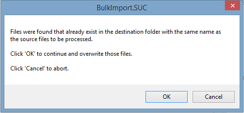 If you import files with the same filename as those that have been imported previously, this situation will be automatically detected, and the user will be notified and provided with an opportunity to overwrite those files, or abort.