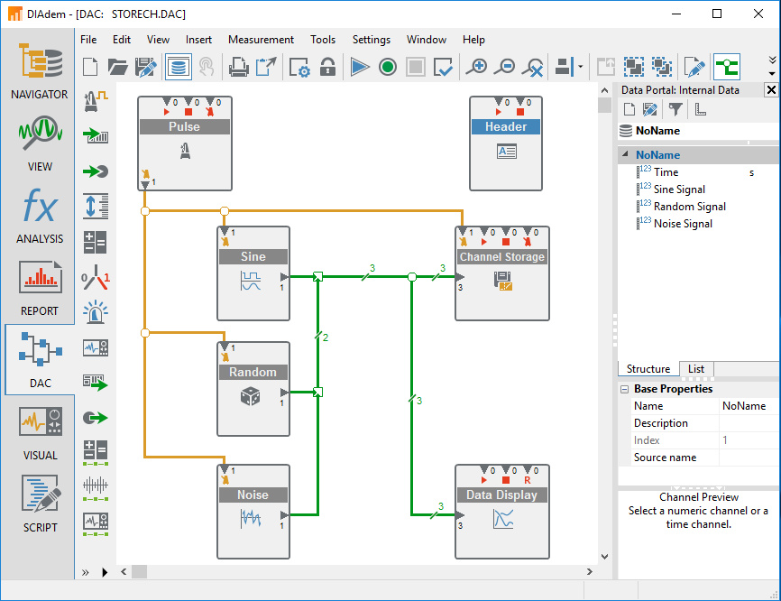 Use the DIAdem DAC panel for measurement and for open and closed loop control when the PC running DIAdem has a NI DAQ device connected (DAC = digital analog controller).