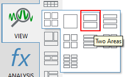 Activate the VIEW panel and create a new layout with the 'File', 'New' menu options. Choose the 'Regular Worksheet Partitions' group bar and then the option 'Two Areas'.