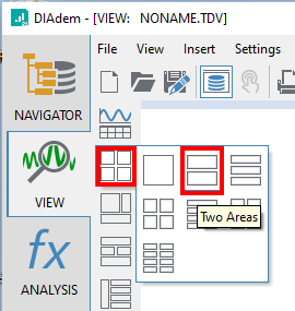 Click on the VIEW panel button to activate it. Make sure the Data Portal is visible, using the keys 'Alt-F6' to show it if not. From the VIEW panel 'File' menu, choose 'New'. Hover your mouse over the Group Bar option 'Regular Worksheet Partitions' and select the 'Two Areas' option.