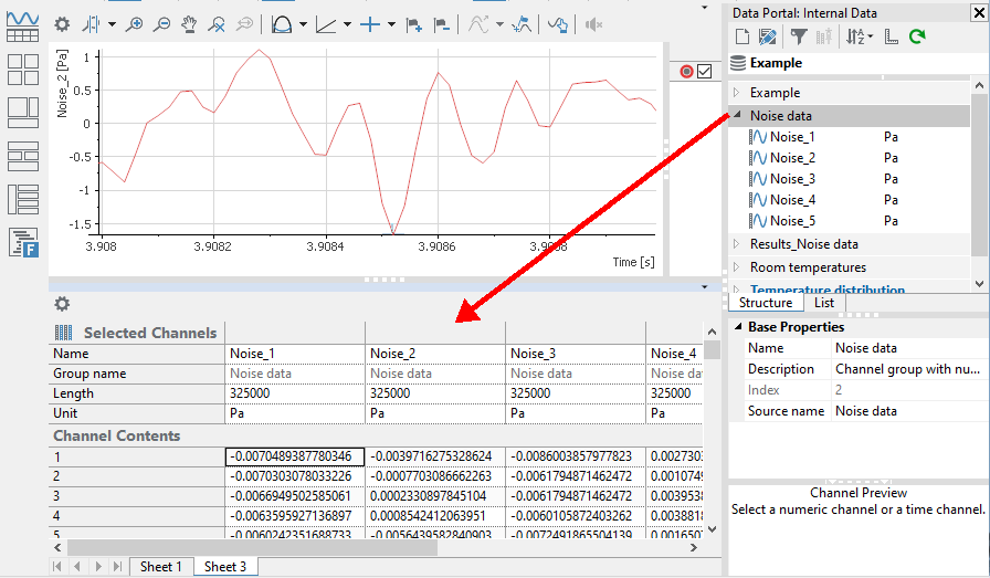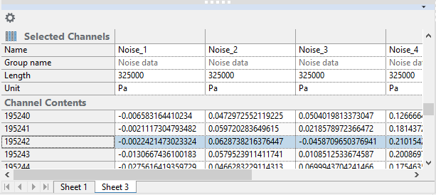Click on the channel group 'Noise data' and then drag and drop it to the new bottom blank area, and choose 'Channel Table' when the pop up menu appears.