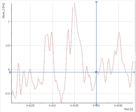 The script will create a new VIEW sheet and area, configure it for a 2D Axis System, and assign the channel 'Noise data/Noise_2' to the curve. Click on the band cursor icon on the VIEW toolbar and set it so that it falls on the 2D Axis System curve between 'P1: 100985' and 'P2: 251310' as shown below.