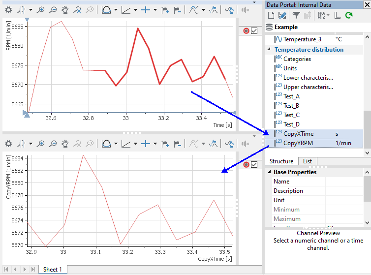 Load the DIAdem example file 'Example_data.tdm' in order to follow this tutorial.