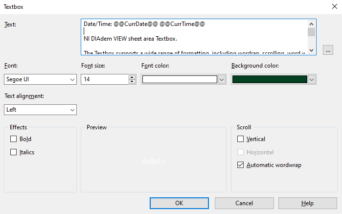 oTextbox.Text = oTextbox.Text & "NI DIAdem VIEW sheet area Textbox." & vbCrLf & vbCrLf