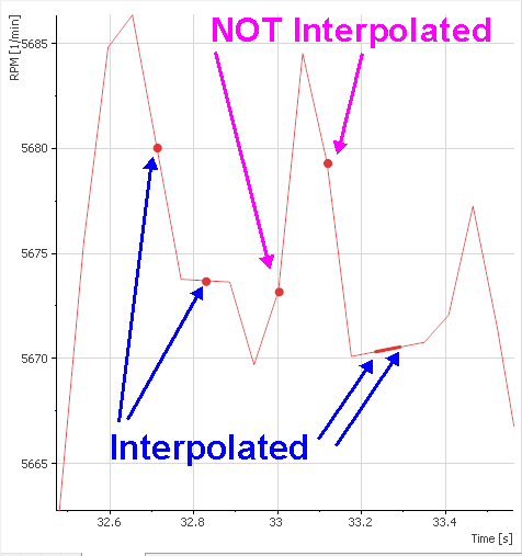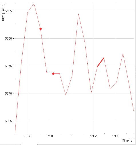 The curve for the channel 'Speed' appears as a thick red line. This is because the channel has many data values, causing the overlapping marker to appear as a line.
