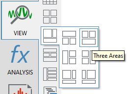 Activate the VIEW panel and clear it by using the menu commands 'File', 'New'. Choose the 'Three Worksheet Partitions' group bar and then the option 'Three Areas' where the bottom is split into two even areas, and a larger horizontal area is above them.