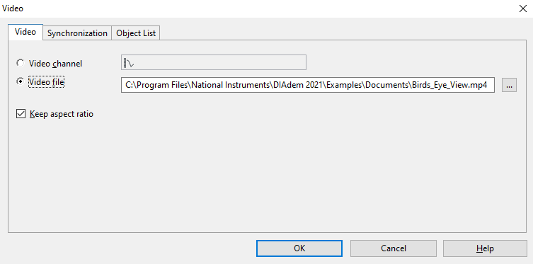 To run the example above in DIAdem, activate the NAVIGATOR panel, clear the Data Portal, and then load the data file 'Birds_Eye_View.tdm' from the folder: 'C:\Program Files\National Instruments\DIAdem ####\Examples\Data\'. Activate the VIEW panel, create a new VIEW layout, and then load the example file 'Birds_Eye_View.tdv' from the folder: 'C:\Program Files\National Instruments\DIAdem ####\Examples\Documents\'.