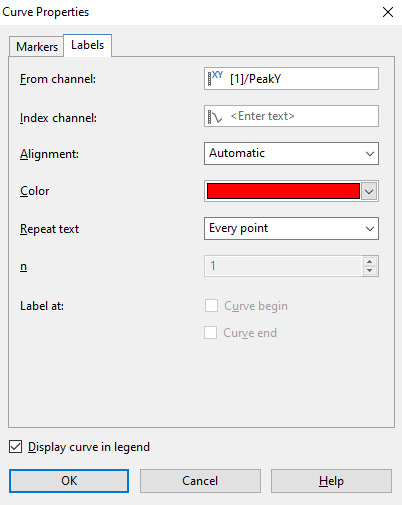 Another example of labeling points on a 2D Axis System curve can be found in the tutorial for FFT Full Spectrum.